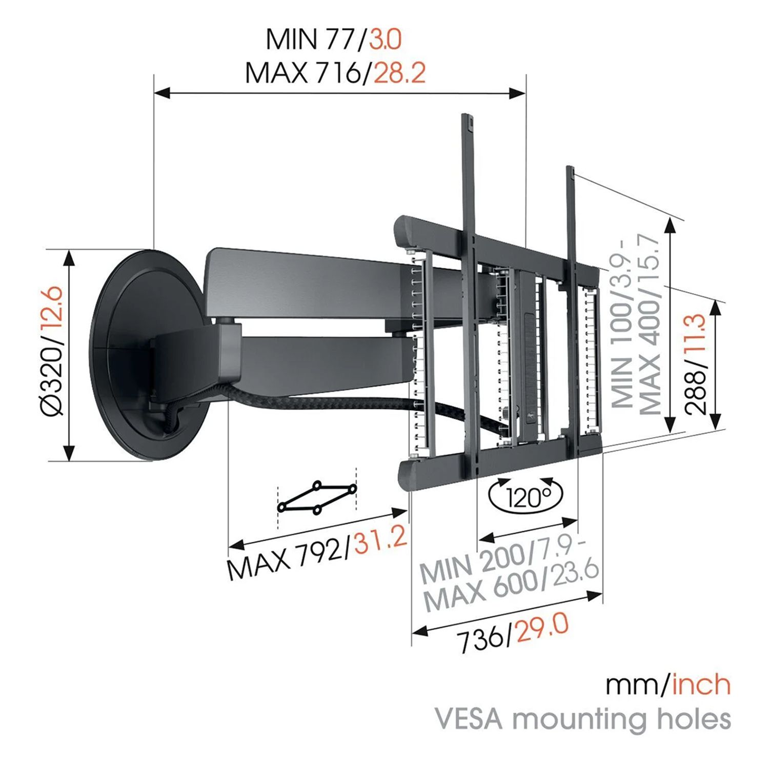 Eksklusivt, dreibart VESA universalveggfeste med motor, app-styring og automatiske funksjoner. Passer TV-er fra 40 til 77”.