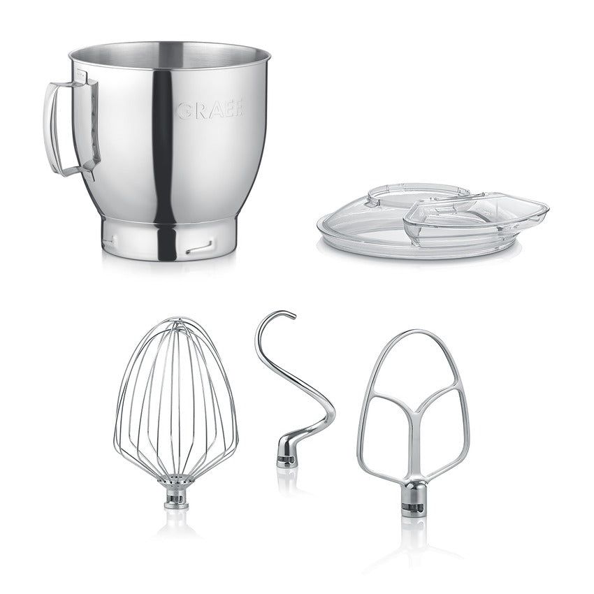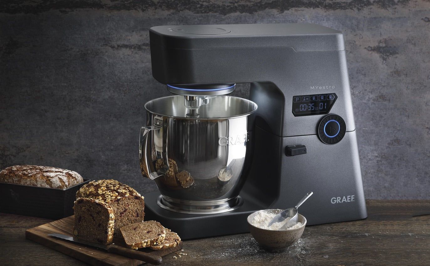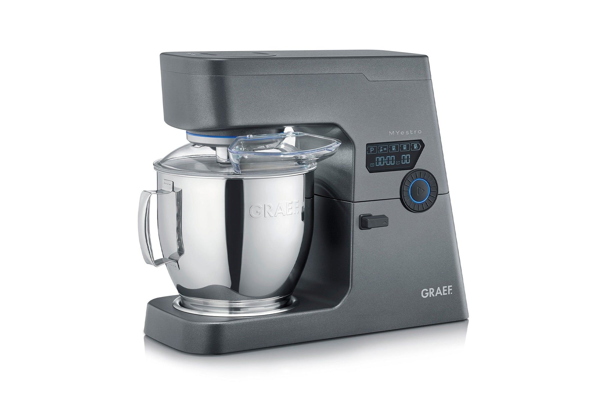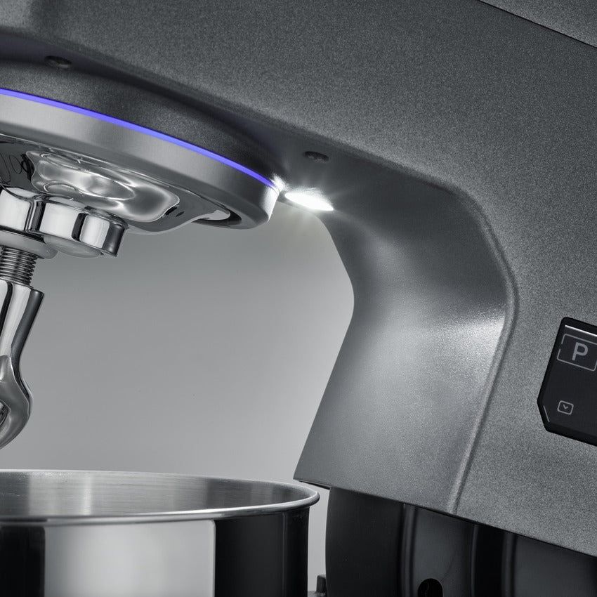 Den absolutt perfekte kjøkkenpartneren! MYestro er utstyrt med en kraftig 800-watts profesjonell likestrømsmotor. Dette betyr at den ikke bare håndterer tunge deiger og store mengder i den 7-liters rustfrie stålbollen med letthet, men også elter, rører og visper svært stille, selv med full bolle.Den solide, moderne designen med Blue Ambience-belysning, berøringsskjerm og tre vakkert formede blandeelementer vil imponere både ambisiøse bakeentusiaster og kjøkkenestetikere.