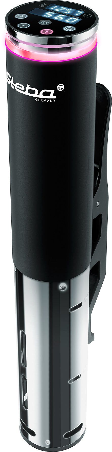 En smart og hendig sous vide stav som er enkel i bruk. Om det er kjøtt, fisk, grønnsaker eller annet, så tilsetter du gjerne krydder eller marinader i vakuumeringen. Plasser ganske enkelt sous vide-staven i en gryte eller varmebestandig beholder, så varmer staven vannet opp til ønsket temperatur og sirkulerer slik at temperaturen alltid blir jevnt fordelt. Med svært nøyaktig temperaturkontroll og timer er sous vide sannsynligvis en av de mest brukervennlige måtene å lage mat på. Det er til og med sunt, da alle vitaminer og næringsstoffer beholdes i vakuumposen under matlagingen. STSV60 Sous vide stav: Nøyaktig kontroll av temperaturen opp til 90 C med 0,5 C intervall. Manuell innstilling, eller automatikk-programmer Varmer opp 20 liter vann til 56 C på 45 min. med et maksimalt avvik på 0,5. C Sirkulerer 12 liter per min Timer opptil 99 timer IPX7 godkjent, 100% vanntett Plassbesparende og mobil Beholder du bruker må være minst 15 cm høy, min temp 0C - 90C.