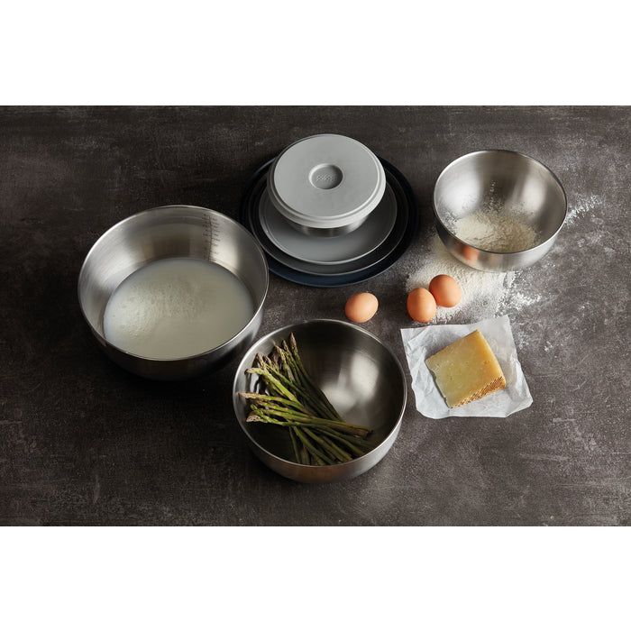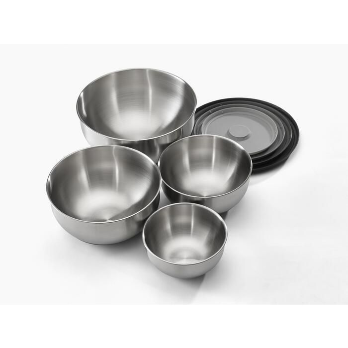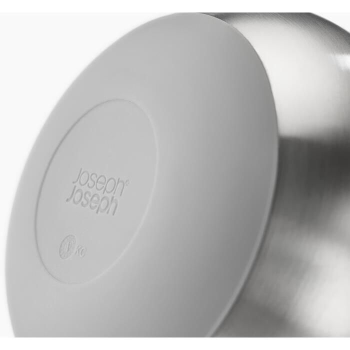 Et praktisk og høykvalitets bollesett med 4 bakeboller fra Joseph Joseph i rustfritt stål. Med smart lagring, sklisikre bunner og praktiske, lufttette lokk er dette settet det ultimate bollesettet for bakeinteresserte! 4 størrelser: 1,2 liter, 2,1 liter, 3,8 liter og 5 liter Høykvalitets stål Sklisikre bunner i silikon Plassbesparende oppbevaring Lufttette lokk Alle deler tåler oppvaskmaskin Med lokkene får du lufttett og praktisk forsegling. Ideelt for deig som skal heve, eller for å oppbevare middagsrester. Når du legger bollene i hverandre og legger lokkene på toppen, tar de like liten plass som den største bollen (28,5 cm i diameter). Rengjøringen er enkel. Etter bruk kan du bare plassere dem i oppvaskmaskinen for en effektiv rengjøring. Dette sparer deg tid, slik at du kan fokusere på det som virkelig betyr noe – bakingen! Lokkene skal i oppvaksmaskinens øverste hylle, eller vaskes for hånd.