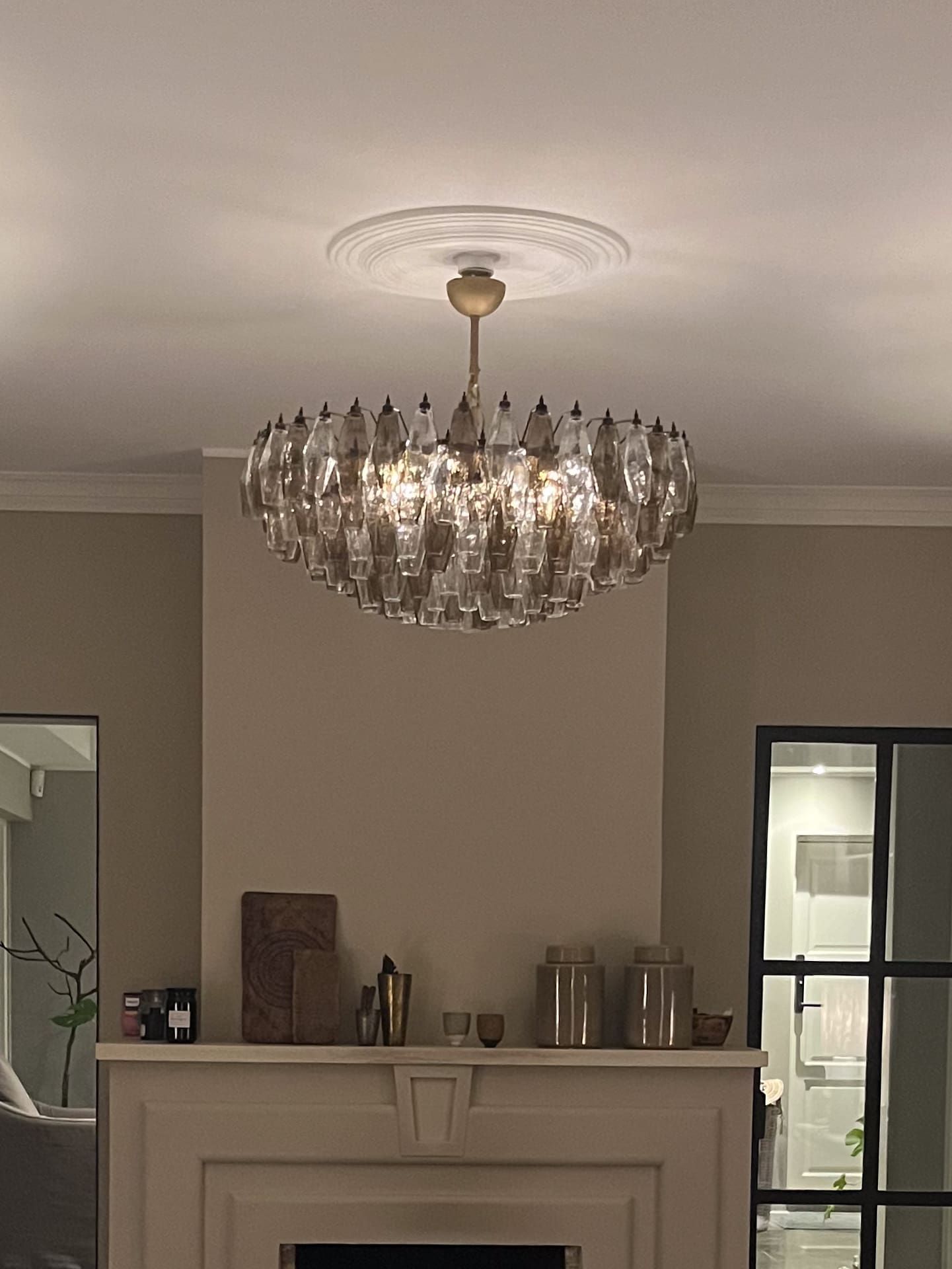 Murano lysekroner,Klar,Poliedri,Røykfarget,Stor