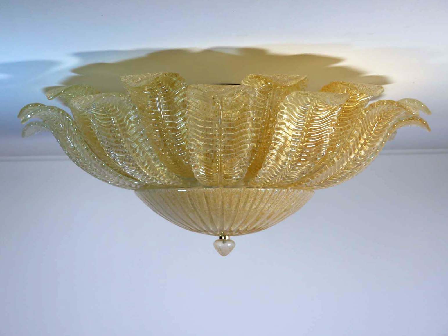Murano taklampe - Barovier - Gul Matt gull patinert