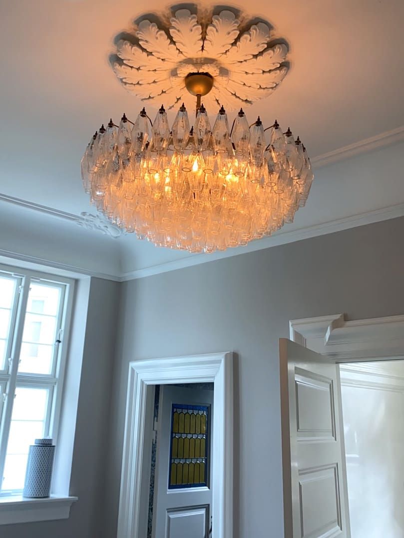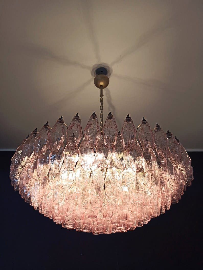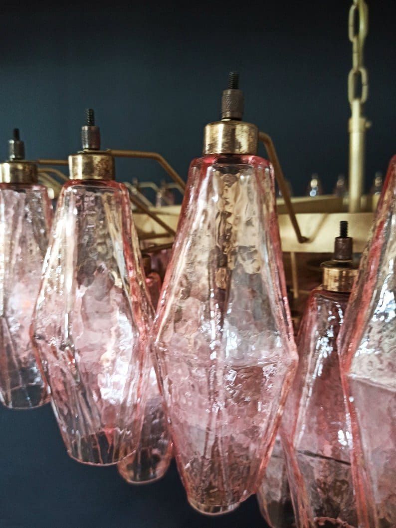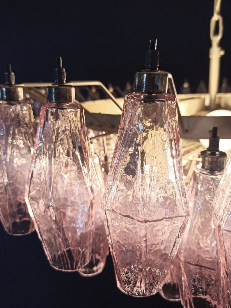 Murano lysekrone - Poliedri - 185 glass - Rosa Matt gull patinert