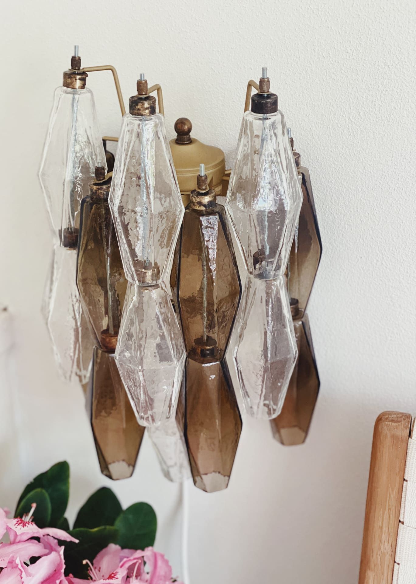 Murano - Vegglampe - Poliedri - Røykfarget/Klar Matt gull uten patinering Med ledning, bryter og støpsel