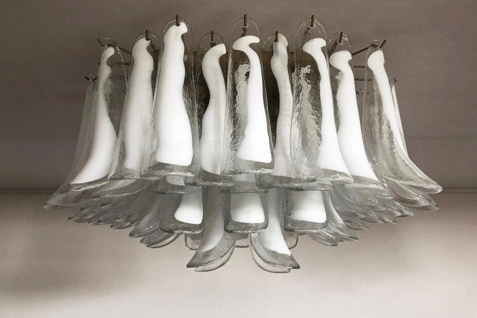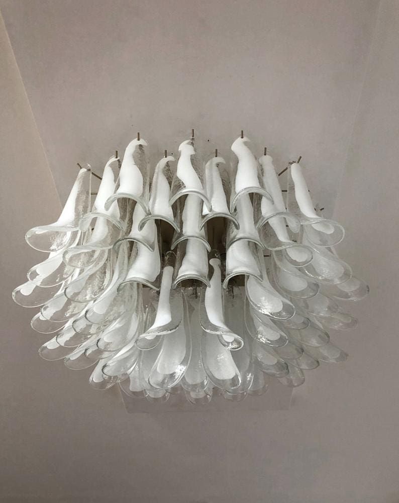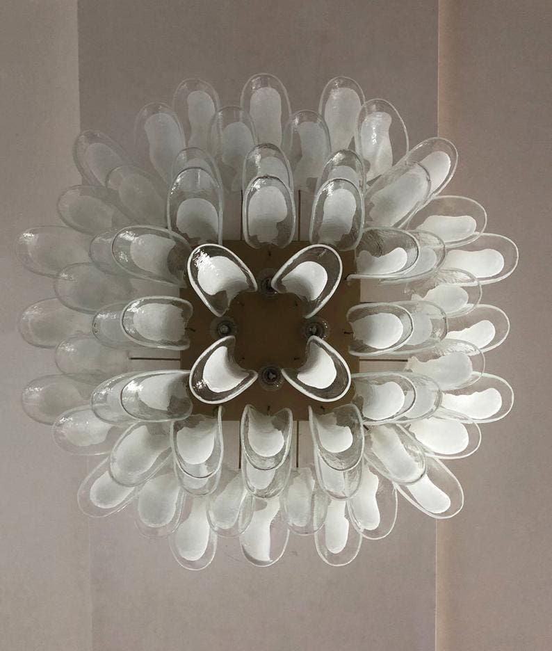 Murano taklampe - 64 kronblader - klar Krom patinert