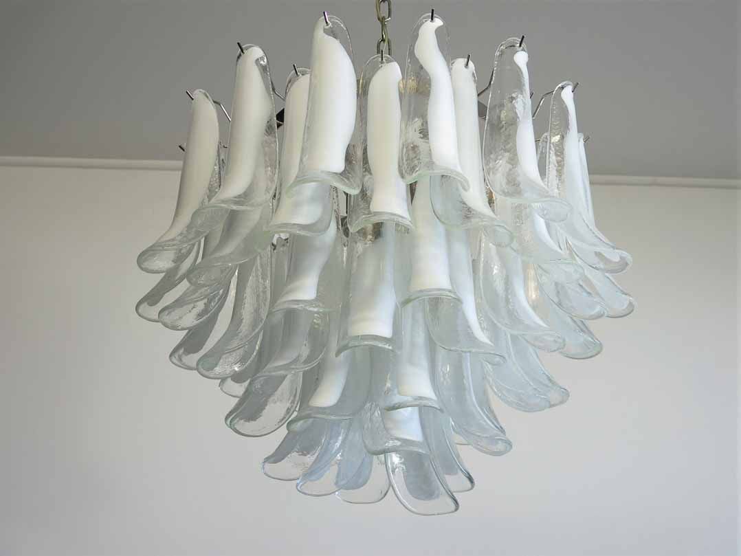 Murano lysekrone – 53 Kronblade – Hvit Krom patinert