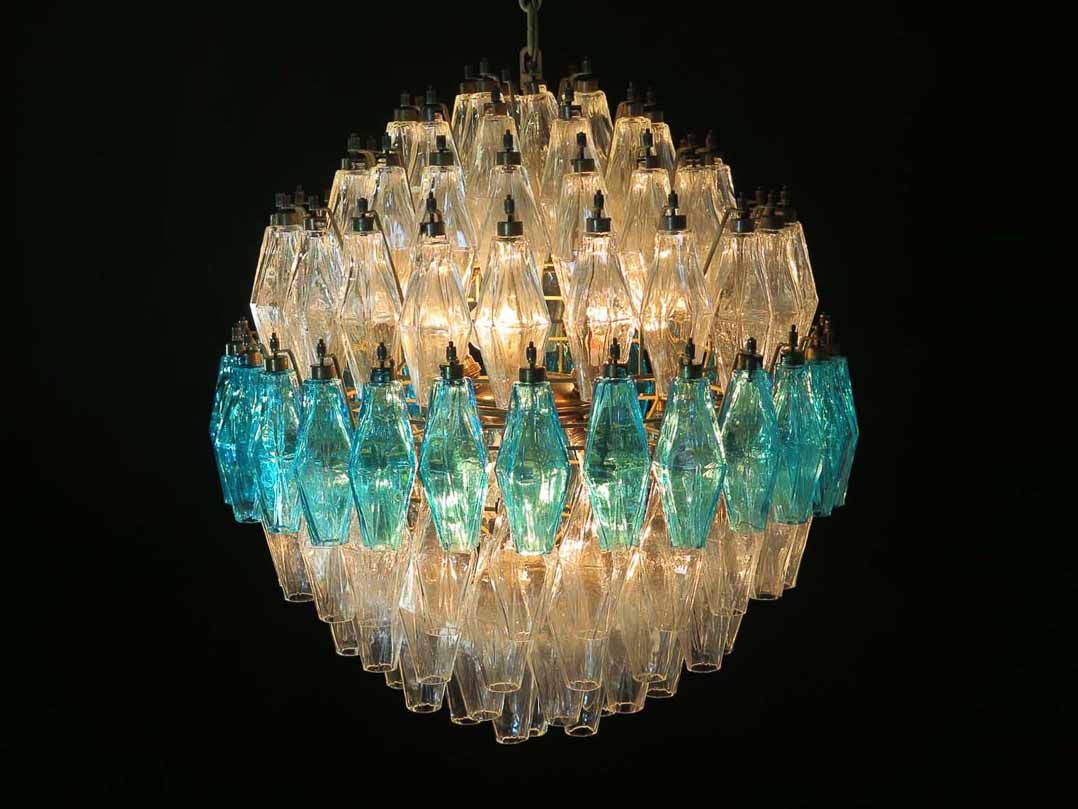 Murano Lysekrone - Poliedri - 140 glass - Klar/Blå