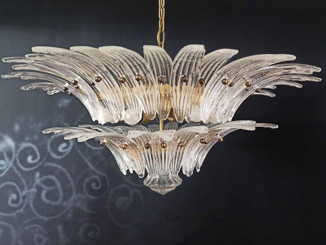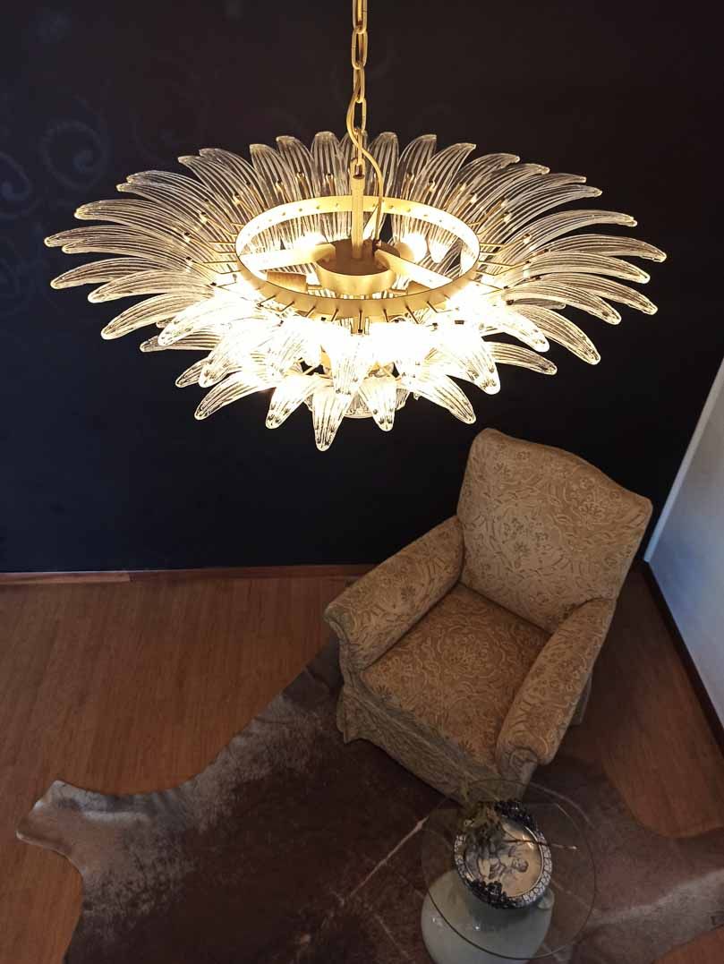 Farge: KlarMål: 120 cm i høyden med kjede (kan forkortes og forlenges) 45 cm i høyden uten kjede, 87 cm i diameter.Mål glass: 26 cm lengde x 6 cm i bredden.Lyspærer: 6 lyspærer E27 dimensjon (ikke inkludert i dette salget) fungerer også med dimmer.Vekt: 23 kg.