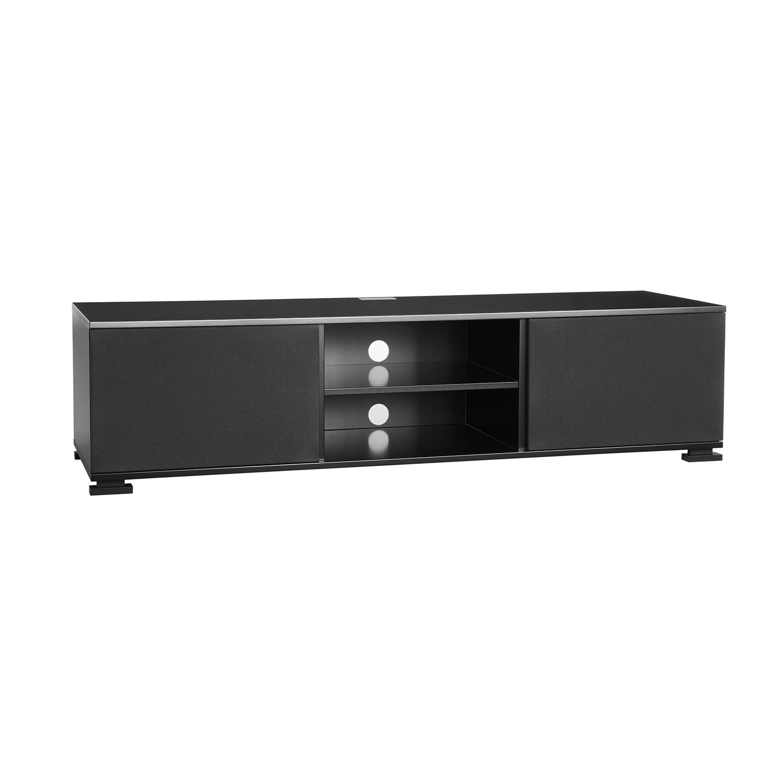 Hi-fi-møbel med 36,5 cm dybde og tre seksjoner. Passer f.eks. til et kompakt anlegg, høyttalere, tilbehør og en stor TV. Sort eller hvit finish