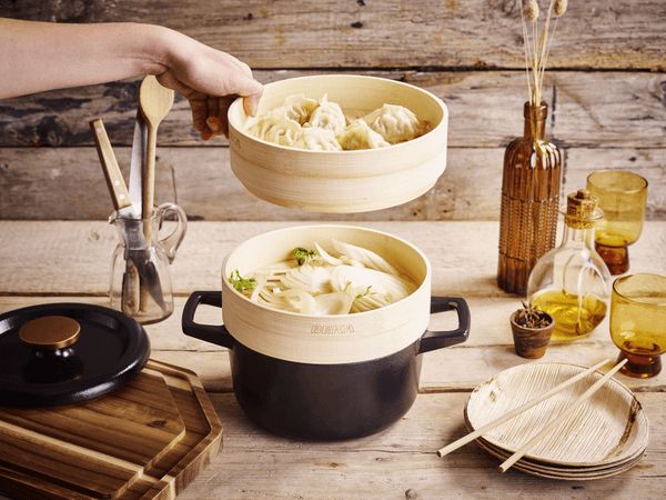Prv den ultimate kombinasjonen av tradisjon og innovasjon med vr robuste stpejernsgryte, komplett med to dampinnsatser i bambus. Nyt sunne og smakfulle retter fra klassiske gryteretter til grnnsaker, dumplings og fisk tilberedt sknsomt med damp.Den slitesterke stpejernsgryten fordeler varmen jevnt og holder p varmen lenge, mens de sm knottene under lokket srger for at ingrediensene holder seg saftige. Med to niver kan du tilberede flere retter samtidig.Ekstra tykk emalje gjr gryta ripebestandig og enkel rengjre, samtidig som bunnen beskytter bde kokeplater og benker. Passer til alle varmekilder, inkludert induksjon. Hndvask anbefales for lengre levetid.Sunnere mat, rikere smak prv dampkoking i dag!