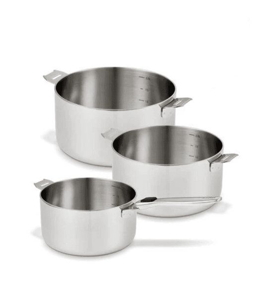 Dette kasserollesettet kommer med et patentert Clickfix-system for avtagbare håndtak, som gir kompakt oppbevaring. Laget av slitesterkt 18/10 rustfritt stål med trelags bunn og sider for energieffektiv matlaging med jevn varmefordeling. Settet har innvendige målemarkeringer, og de utskiftbare håndtakene gir fleksibilitet til å bruke dem på ulike kjeler. Kompatibelt med alle koketopper, inkludert induksjon. Grytesettet har målene 16cm - 1,6L, 18cm - 2,1L og 20cm - 2,7L. Dette settet inkludere IKKE håndtak/lokk, men kan kombineres med korte og lange håndtak som kjøpes separat.