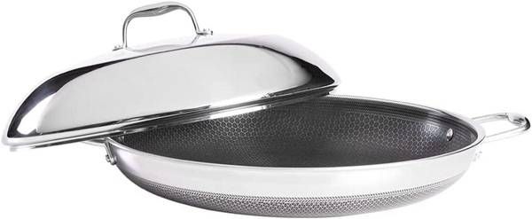 Velkommen til den hybride revolusjonen - Hexclad - anbefalt av Gordon Ramsay!Dette er en 14" Wokpanne med lokk, ca. 36 cm i diameter og ca. 5,7cm dyp.Hexclad har gjenoppfunnet stekepannen og skapt noe fantastisk vakkert med sin patenterte teknologi. Stekepanner og gryter kombinerer holdbarheten til stpejern, ytelsene til stl og fordelene med non-stick, i ett og samme produkt. Det betyr at du kan slippe ls ditt potensiale p kjkkenet uansett hva du lager. Hexclad er den eneste p markedet som er non-stick p innsiden og p utsiden. Med Hexclad kan du tilberede alt fra den mest delikate fisken til en saftig og perfekt brunet biff uten bekymre deg for hvilken stekepanne du skal benytte, og produktene er PFOA-frie. Siden du har fordelen av en vanlig non-stick stekepanne og en stlpanne, trenger du kun bruke et minimum av stekefett samtidig som du kan bruke metallredskaper rett i pannen.Alle Hexclad produkter har en tre lag med magnetisk stl i bunnen og gir en ekstremt god varmefordeling. Dette medfrer at du kan bruke lavere varme for oppn nsket resultat. Hndtaket er utformet i stl og har en herlig ergonomisk utforming. Ved mattilberedning p koketopp kan du alltid vre trygg p at de ikke tar til seg varme. Hexclad kommer med metallhndtak og kan settes rett i stekeovnen ogs!Belegget i vre gryter og panner har et egenutviklet TerraBond keramisk non-stick-belegg, som er fri for PTFE og PFAS som gir stekepannene og grytene en holdbarhet og robusthet ulik noe annet. Ikke bare er Hexclad enkle bruke, de er ogs svrt enkle rengjre. De kan legges rett i oppvaskmaskinen om du nsker det.Sammen med titusenvis av hobbykokker er ogs Hexclad blitt omfavnet av flere verdensbermte kokker. Den strste av dem alle, med 7 Michelin-stjerner, Gordon Ramsay Kaller Hexclad "Rolls-Royce av stekepanner". Han elsker dem faktisk s mye at han selv bruker Hexclad hjemme og i alle sine restauranter verden over.Ildfast opp til 260 graderTler metallredskaperStay-cool hndtakKan brukes p alle koketopper, inkludert induksjonKan vaskes i oppvaskmaskin