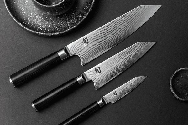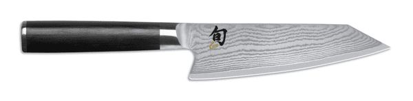 Japansk kjøkkenkniv, Kai Shun Classic kiritsuke. Kiritsuken ble designet som en allsidig kniv for å tilberede asiatiske retter. De gjorde det ved å kombinere bladet til en nakiri (grønnsakskniv) og sujihiki (fiskekniv). Denne kombinasjonen sikrer at du med kun én kniv kan kutte mange forskjellige ingredienser. Det gjør denne kiritsuken perfekt for de fleste skjærejobber på kjøkkenet. Med en bladlengde på 15 cm er denne kiritsuken perfekt for de fleste oppgaver på kjøkkenet.Kai Shun Classic bladBladet er et særtrekk ved Classic Kai-serien. Den er laget av 32-lags damaskusstål. Dette er en smiteknikk som bruker flere lag med stål og smir dem oppå hverandre for å skape en unik, bølgete effekt. Kjernen i bladet er laget av VG-MAX stål. Dette er en rustfri, japansk type stål med en hardhet på 61 HRC, som gir den utmerkede skjæreegenskaper. Lagene av damaskusstål ble brettet rundt denne kjernen. Resultatet er et estetisk tiltalende blad med skjæreegenskapene til VG-MAX stål.Kai Shun Classic håndtakHåndtakene er laget av svart pakka-tre. Disse knivene har et tradisjonelt D-formet håndtak: en japansk funksjon. Den er forskjellig fra en europeisk kokkekniv, da disse har et symmetrisk håndtak. Denne asymmetriske D-formen sørger for at håndtaket ligger godt i hånden. Enden av håndtaket har en kappe i stål som gir en fin vektfordeling og balanse. Det svarte pakka-treet står i fin kontrast til det polerte bladet og enden av håndtaket.