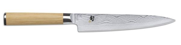 KAI Shun White Universalkniv, 15cm. Den legendariske og bestselgende serien KAI Shun Classic kommer n ogs med hndtak i lyst treverk. KAI Shun Classic White er vinner av German Design Awards i 2021 for sitt moderne nordiske design i kombinasjon med eldgamle japanske knivtradisjoner. Knivene produseres ellers med samme hyytelses VG-MAX-stl med 32 lag damask, som KAI Shun Classic. Dette betyr en sylskarp kniv med utrolige kutteegenskaper over lang tid. Det er ikke uten grunn at kokker verden over foretrekker KAI Shun p sine kjkken. Hndtaket er D-formet og fremstilles i PakkaWood. Dette er et komposittmateriale som er svrt holdbart og gir godt grep. Knivene hndlages i Japan etter gamle samuraitradisjoner. 61 (1) HRC Rockwell.