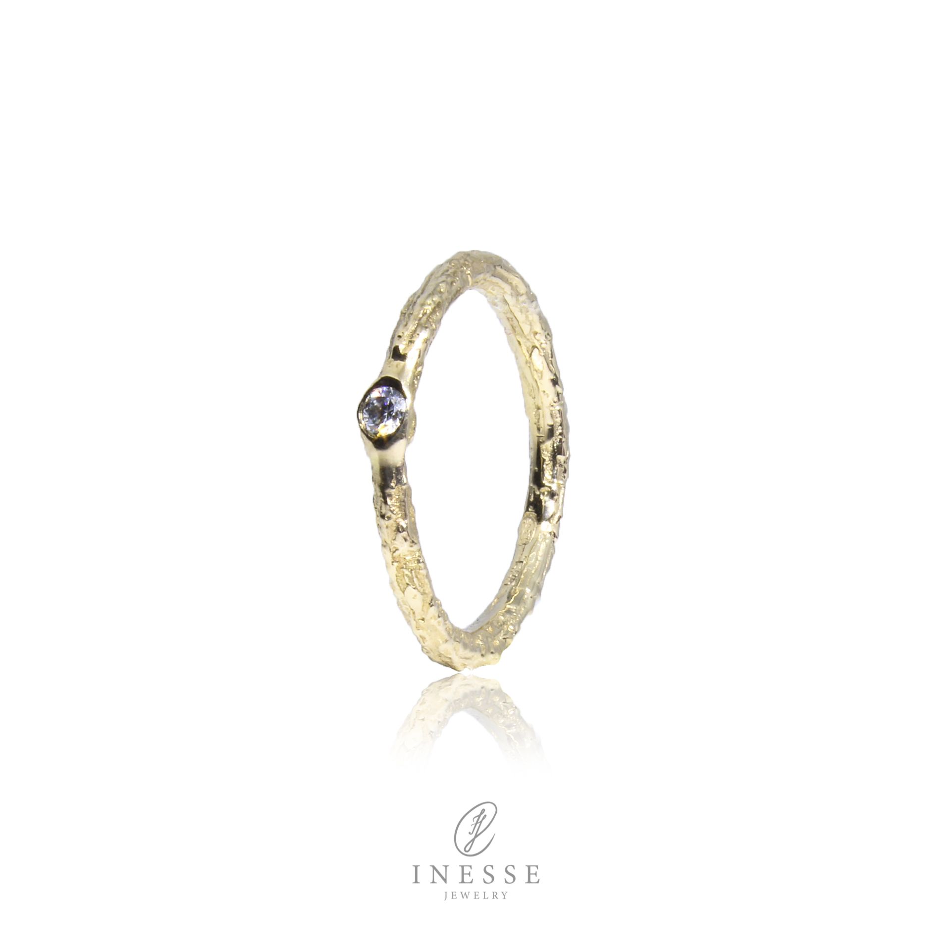 Inesse Jewelry Tynn furugren-ring i gultgull med 0,05ct TW/SI diamant
