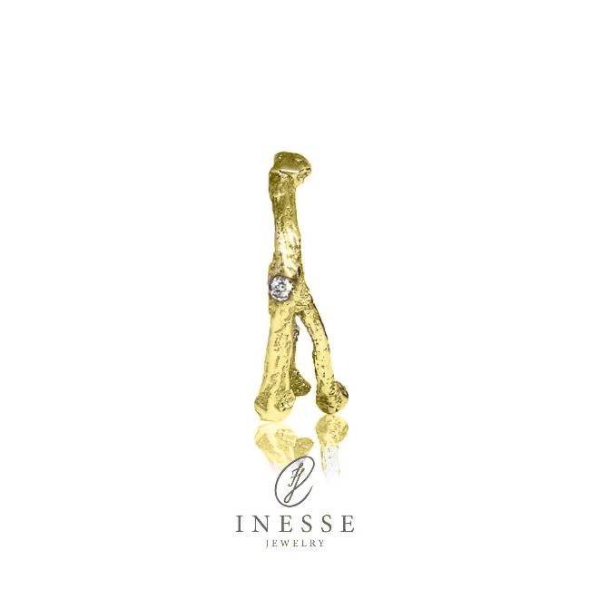 Inesse Jewelry Asketre-gren designerring i gult gull med 0.015 ct TW/SI-diamant