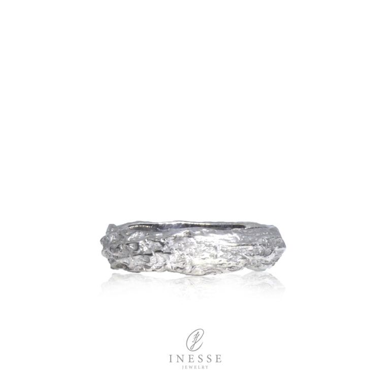 Furugren-ring i sølv – Naturlig Eleganse Furugren-ring i sølv 925 er en solid og unik ring, inspirert av den naturlige skjønnheten i furutreets tykke grener. Det detaljerte relieffmønsteret er dypt og slitesterkt, designet for å vare livet ut. Ringen passer perfekt både til hverdags og fest. Den ser vakker ut alene, men fungerer også fint som sidering eller i kombinasjon med andre ringer. Hver ring er et kunstverk, håndlaget av en dyktig gullsmed, noe som gjør den helt unik. Ringskinnen i sølv 925 har en bredde på 5 mm og leveres uten cubik Zirkon. Furugren-ring finnes også i hvitt, gult og roségull, med eller uten diamanter. Spesifikasjoner: Bredde: 5 mm Tykkelse: 1,5-2 mm Profil: oval Materiale: sølv 925 Bestilling og levering: Leveringstid: 2-5 arbeidsdager (kan variere i høytider). Haster det? Noen modeller kan sendes samme dag eller neste dag ved bestilling innen kl. 12. Ta kontakt for mer informasjon. Furugren-ring i sølv – et tidløst og vakkert smykke. Ønsker du en unik, håndlaget ring fra en dyktig gullsmed? Utforsk flere produkter fra Inesse Jewelry . Furugren-ring i sølv