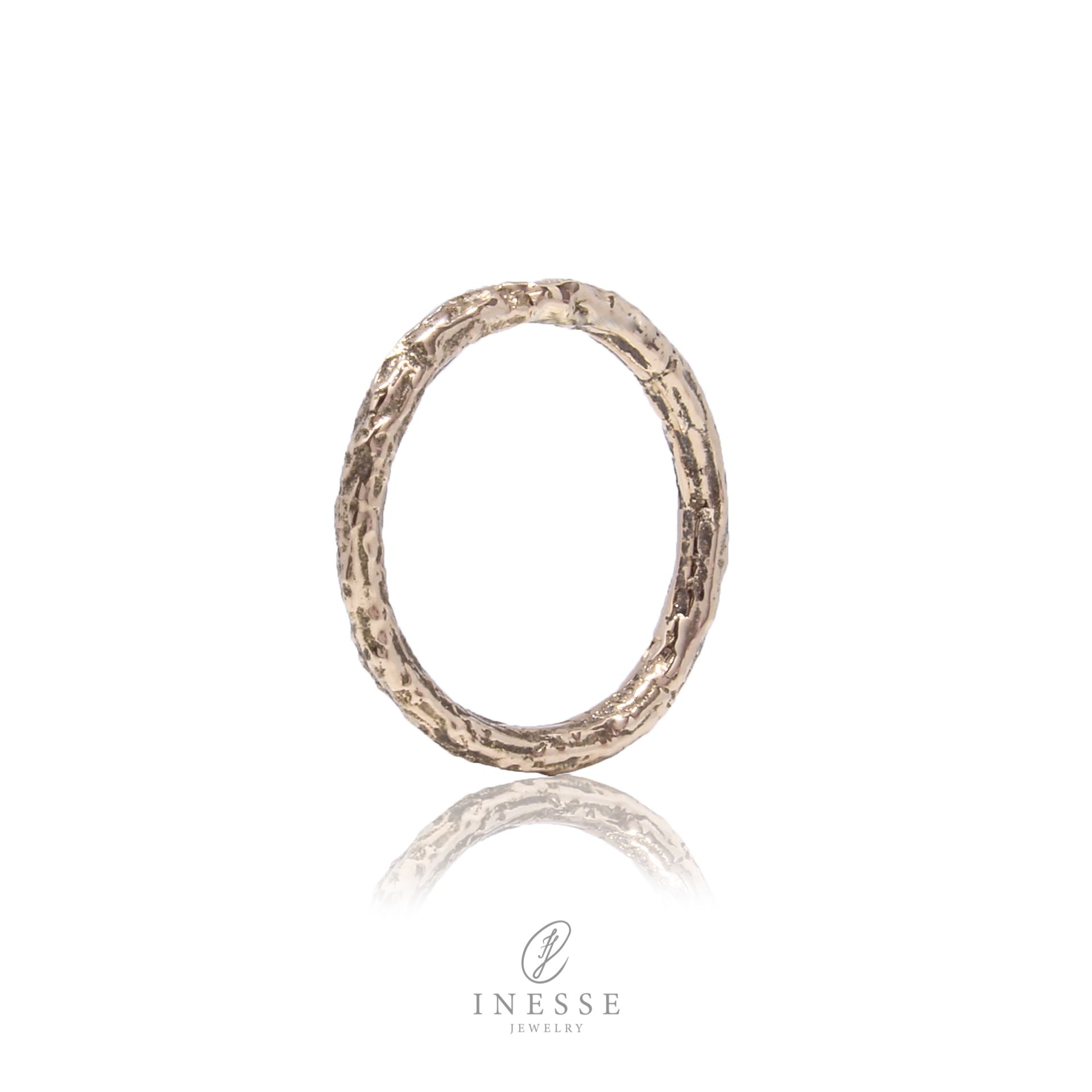 Tynn furugren-ring i rosegull – Naturlig Eleganse Tynn Furugren-ring i roségull er en elegant og unik ring, inspirert av den naturlige skjønnheten i furutreets grener. Det detaljerte relieffmønsteret er dypt og slitesterkt, designet for å vare livet ut. Ringen passer perfekt både til hverdags og fest. Den ser vakker ut alene, men fungerer også fint som sidering eller i kombinasjon med andre ringer. Hver ring er et kunstverk, håndlaget av en dyktig gullsmed, noe som gjør den helt unik. Ringskinnen i roségull har en bredde på 2 mm x 2 mm og leveres uten diamant. Tynn furugren-ring finnes også i hvitt, gult og roségull, med eller uten diamanter. Spesifikasjoner: Bredde: 2 mm Materiale: 14K gull (585) – velg mellom roségull, gult gull eller hvitt gull Tykkelse: 2 mm Profil: Rund Bestilling og levering: Leveringstid: 7–14 arbeidsdager (kan variere i høytider). Haster det? Noen modeller kan sendes samme dag eller neste dag ved bestilling innen kl. 12. Ta kontakt for mer informasjon. Tynn furugren-ring i rosegull – et tidløst og vakkert smykke. Ønsker du en unik, håndlaget ring fra en dyktig gullsmed? Utforsk flere produkter fra Inesse Jewelry . Tynn furugren-ring i rosegull