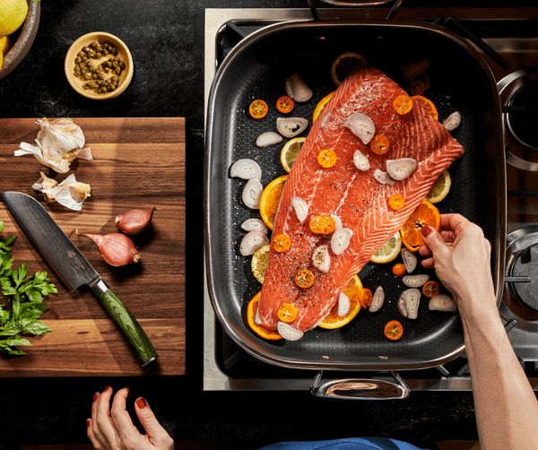 Hexclads hybride lille ovnspanne har vår patenterte hybridteknologi som gir deg en rekke fordeler. Den kombinerer holdbarheten til støpejern, ytelsene til stål og fordelene med non-stick, i ett og samme produkt takket være det keramiske belgget uten PFAS og PFOA. Ovnspannen kommer med en rist som forhindrer at ribba eller steken berører bunnen av pannen og lar saften renne gjennom. Den er også utrolig allsidig, og kan brukes både på komfyrtoppen, i ovnen og på grillen uten problemer.- Ideell for steking av ribbe, grønnsaker og lasagne- Kan brukes på koketopp, ovn og grill- Tåler metallredskaper- Tåler opp til 260°CMål L45xB25xH8cm