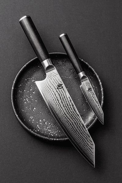 Japansk kjkkenkniv, Kai Shun Classic kiritsuke. Kiritsuken ble designet som en allsidig kniv for tilberede asiatiske retter. De gjorde det ved kombinere bladet til en nakiri (grnnsakskniv) og sujihiki (fiskekniv). Denne kombinasjonen sikrer at du med kun n kniv kan kutte mange forskjellige ingredienser. Det gjr denne kiritsuken perfekt for de fleste skjrejobber p kjkkenet. Med en bladlengde p 15 cm er denne kiritsuken perfekt for de fleste oppgaver p kjkkenet.Kai Shun Classic bladBladet er et srtrekk ved Classic Kai-serien. Den er laget av 32-lags damaskusstl. Dette er en smiteknikk som bruker flere lag med stl og smir dem opp hverandre for skape en unik, blgete effekt. Kjernen i bladet er laget av VG-MAX stl. Dette er en rustfri, japansk type stl med en hardhet p 61 HRC, som gir den utmerkede skjreegenskaper. Lagene av damaskusstl ble brettet rundt denne kjernen. Resultatet er et estetisk tiltalende blad med skjreegenskapene til VG-MAX stl.Kai Shun Classic hndtakHndtakene er laget av svart pakka-tre. Disse knivene har et tradisjonelt D-formet hndtak: en japansk funksjon. Den er forskjellig fra en europeisk kokkekniv, da disse har et symmetrisk hndtak. Denne asymmetriske D-formen srger for at hndtaket ligger godt i hnden. Enden av hndtaket har en kappe i stl som gir en fin vektfordeling og balanse. Det svarte pakka-treet str i fin kontrast til det polerte bladet og enden av hndtaket.
