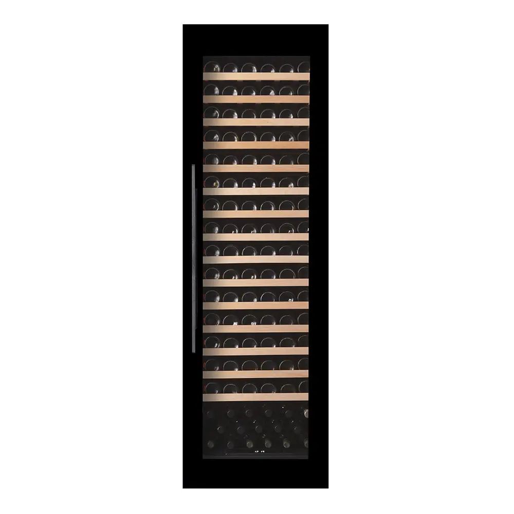 Pevino Majestic 101 flasker, en fullt integrerbar vinskap fra Pevino. Oppbevarer 101 flasker i to temperatursoner, med 13 trehyller og flerfarget LED-belysning. Den svarte designen og tilpasningsmulighetene gjør den ideell for moderne kjøkken.