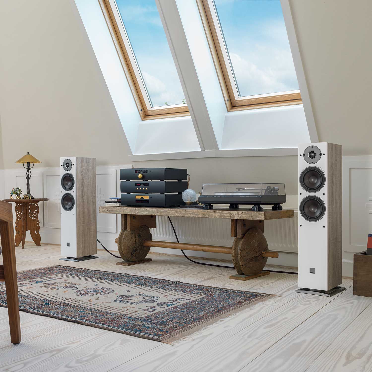 Kraftig trådløst musikkanlegg med streaming, multirom, superenkel TV-lyd og fet stereo fra de kompakte gulvhøyttalerne. En smart vei til ekte hi-fi.