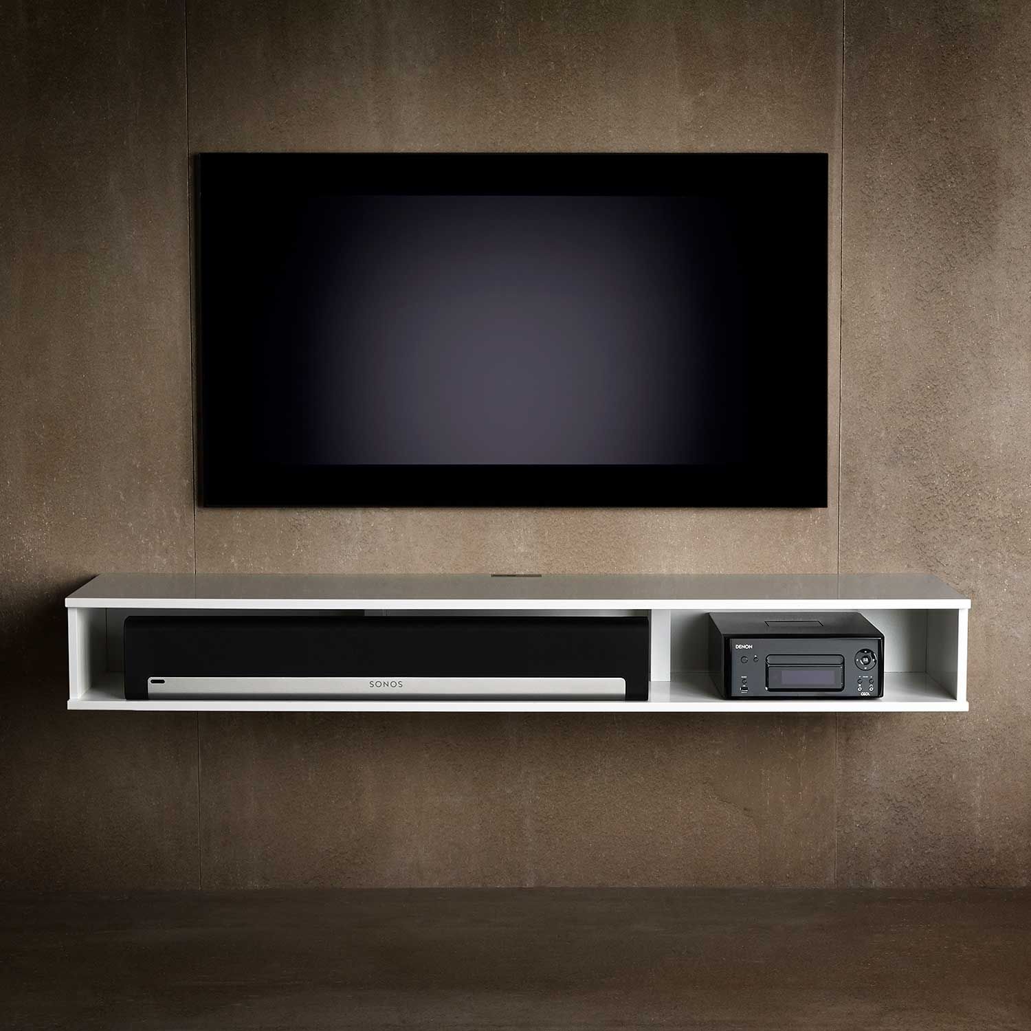 Det perfekte møbelet til lydplanken eller kompaktanlegget ditt. Du kan til og med skjule alt bak en elegant stoffdør. Dybde 25,5 cm, sort eller hvit.