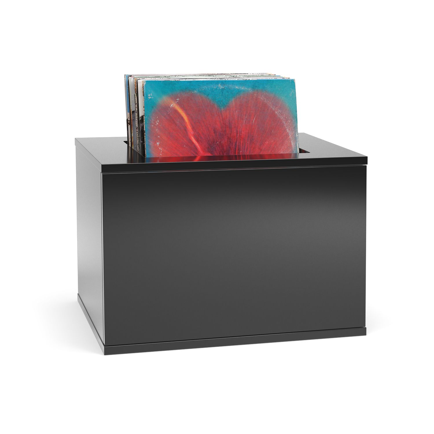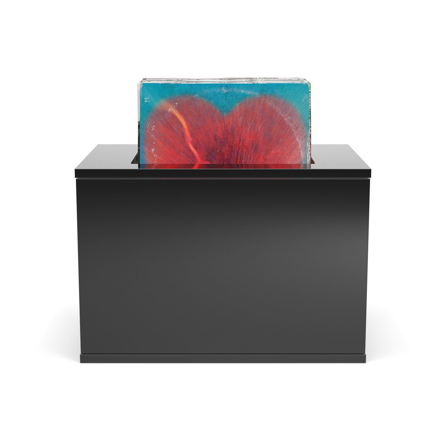 Hi-fi-møbel med plass til vinylplater. Utskjæringen passer til et platecover, slik at du kan ha samlingen på utstilling. 36,5 cm dyp, sort eller hvit.