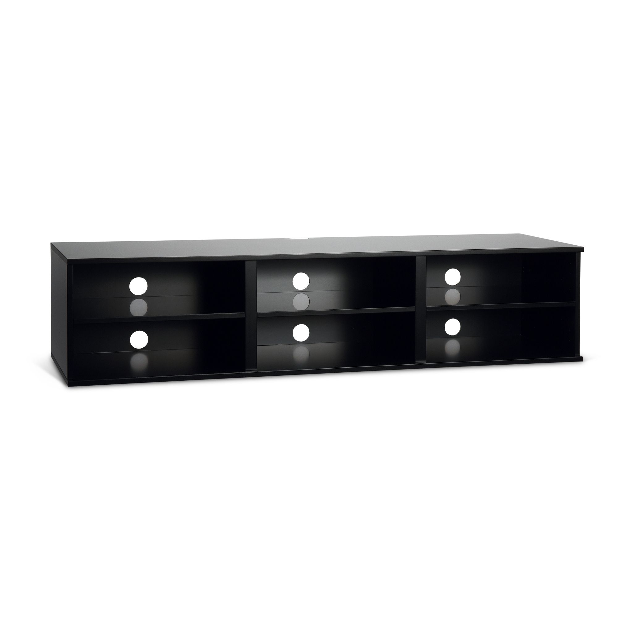 Hi-fi-møbel med 45 cm dybde og tre seksjoner. Passer f.eks. til et fullstørrelses anlegg og en stor TV på topplaten. Sort eller hvit finish.