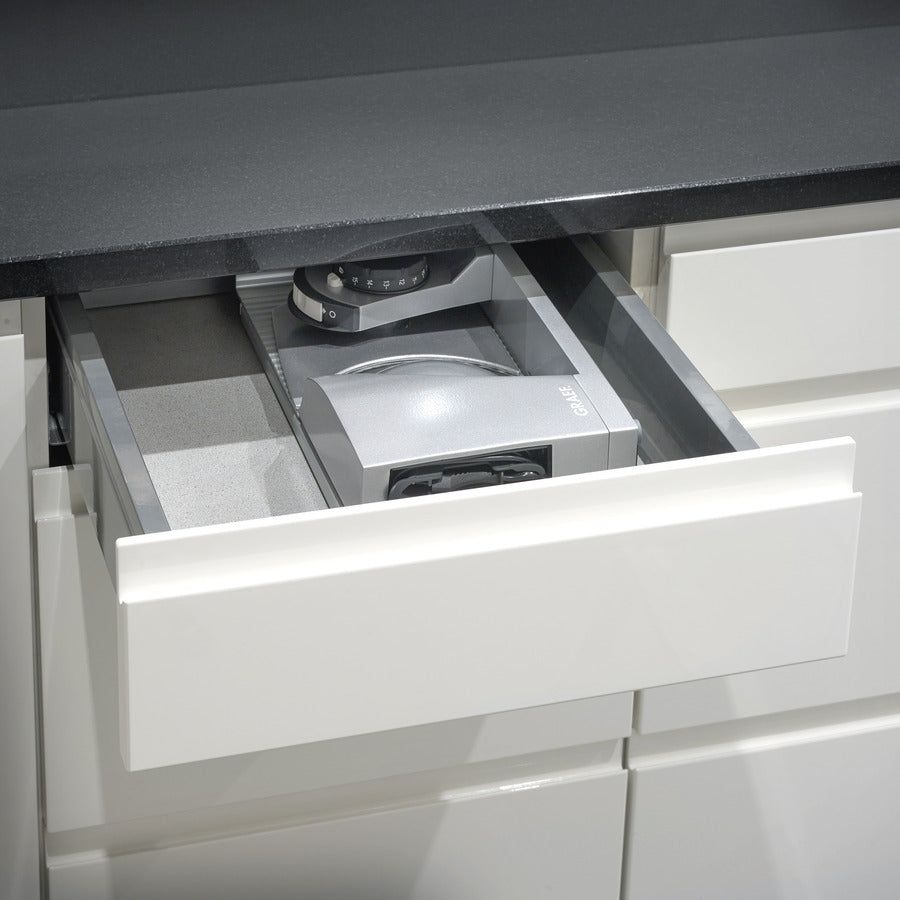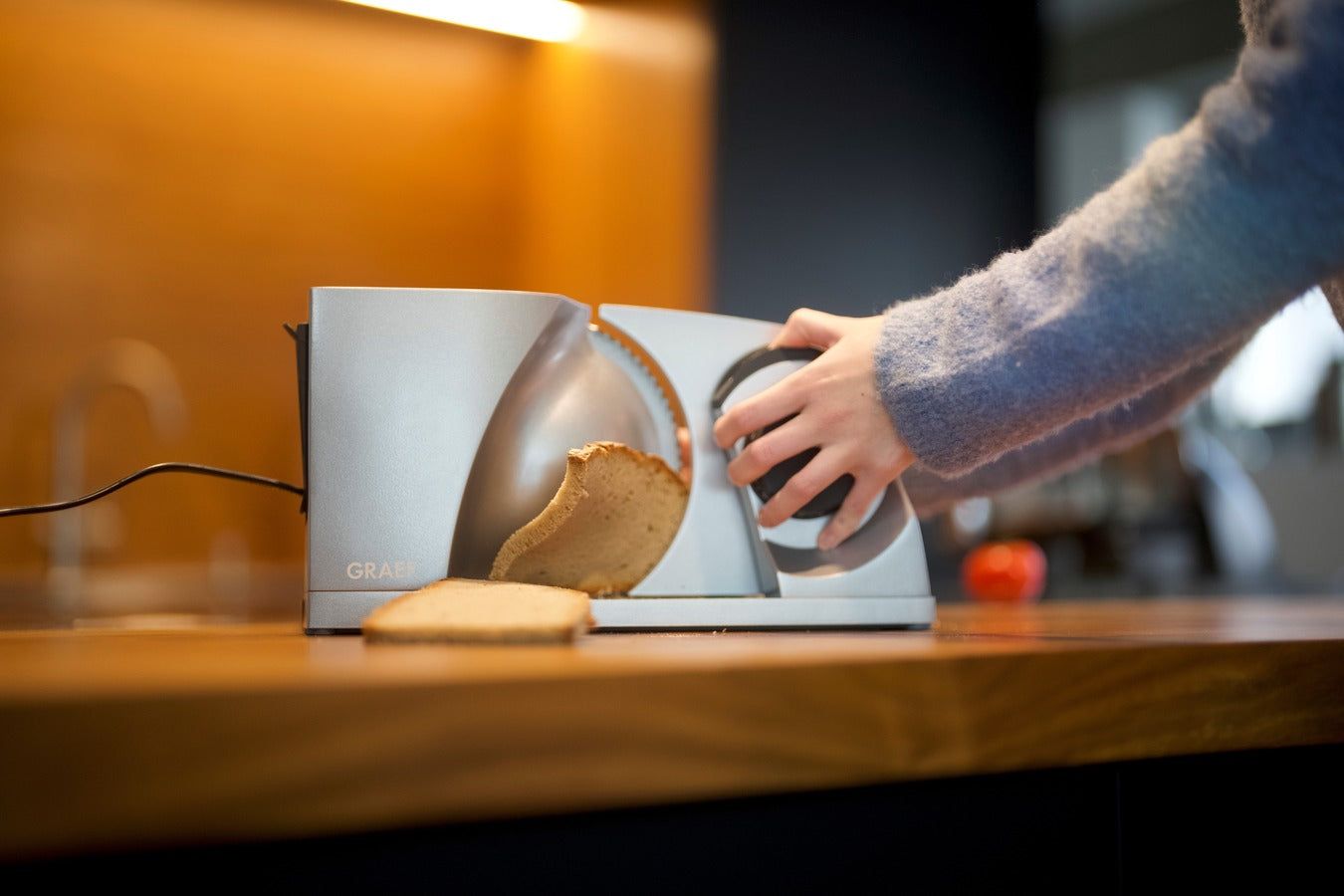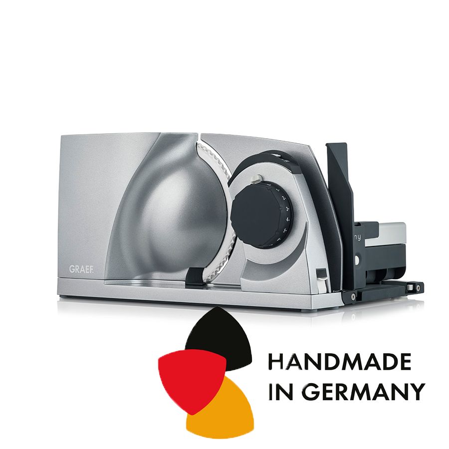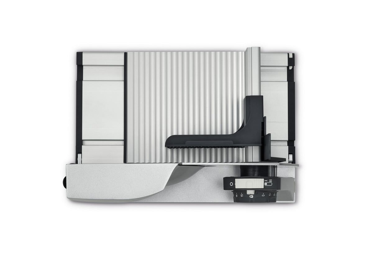 Graef Mytiny slicer i sølv er en sammenleggbar skjæremaskin utviklet for deg som ønsker kvalitet og effektivitet uten at det tar opp unødvendig plass. Den kompakte størrelsen, sammen med at den kan foldes, gjør at maskinen enkelt kan oppbevares i en kjøkkenskuff, et skap eller under benken. Maskinen er utstyrt med en 170 mm bølget kniv i maskinert rustfritt stål, ideell for presis kutting av både brød, ost og annet pålegg. Tykkelsen kan justeres fra 0 til 15 mm, og den betjenes med en dreieknapp som gir mulighet for både Quick-action og kontinuerlig drift. Den støysvake motoren yter normalt 45 watt, med en maks kapasitet på 170 watt når det trengs. Designet i elegant sølv gir et moderne uttrykk som passer godt inn på kjøkkenbenken dersom den ønskes stående fremme. Mytiny kombinerer tysk presisjon med fleksibilitet og er et praktisk valg for kjøkken i alle størrelser. 23,4 x 34 cm. Bare 8 cm tykk, sammenfoldet. Utsvingbar kabeloppruller og individuell justering av kabellengde Hurtig- og kontinuerlig betjeningsknapp Skjæretykkelse 0–15 mm Automatisk barnesikring Allsidig sagtannet kniv i rustfritt stål, Ø 170 mm Meget effektiv 45 W strømbesparende motor med 170 W maksimal skjæreeffekt og lav driftsstøy.